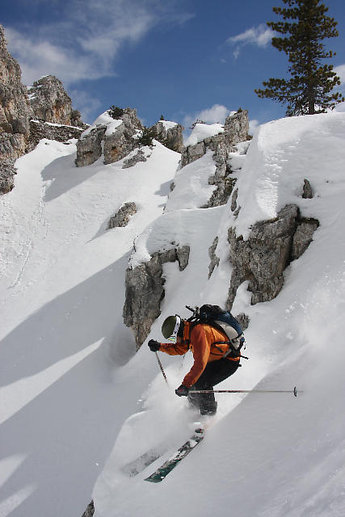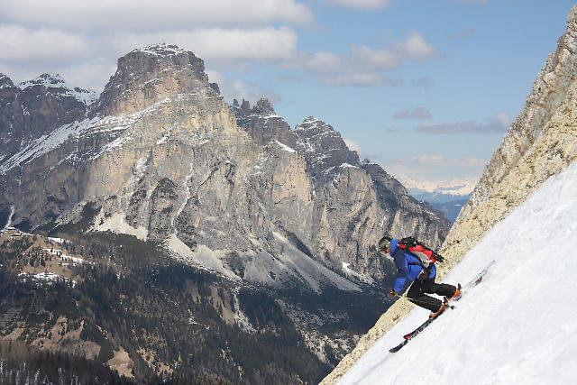 I Cortina tillbringade vi mesta tiden runt omkring Tofana-toppen. Det fanns en hel del sjysst orörd vårsnö och givetvis tested vi också världscupens störtloppspist. Kanske inte en strålande idé att ladda på med feta off pist-skidor, men vi gjorde det i alla fall.