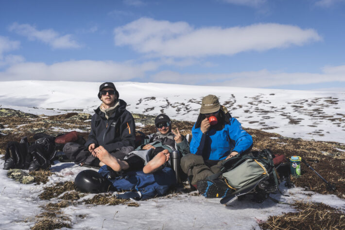 Med brända näsor, tusentals bilder på minneskortet, skavsår, förbrukade stighudar och lappade skacklar kommer vi ifrån den här turen med humör och hälsa som inte längre förvånar. Expeditioner av det längre slaget kan vi. Men de är andra utmaningar som beskrivet tidigare där utvecklingen verkligen gör skillnad. Även om man förväntar sig att behöva dra pulkor på grus med granris spänt under pulkan så kommer man mycket längre än man tror bara man kliver ut och börjar. Vi välkomnar alla som har äventyrslusten, barnasinnet och modet att doppa tårna utanför komfortzonen att följa med oss ut i det vita där naturen ställer frågorna och vi i grupp söker svaren. Har vi viljan att lära och bibehåller respekten för fjällen så är det fantastiskt att upptäcka hur mycket vi kan växa när vi gör det tillsammans. Tack för oss!