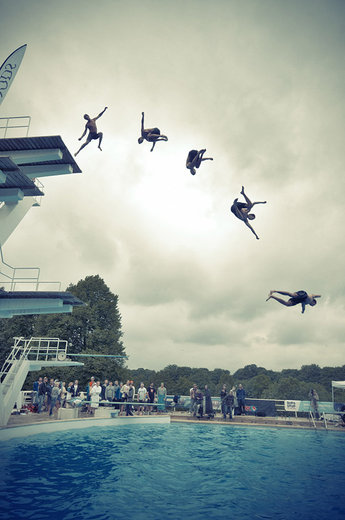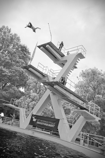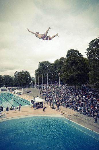 Hopparna skulle från tio meters höjd gå för magplask men vika ihop kroppen precis innan vattenytan. I kvalet var det ”klassisk död” som gällde, vilket betydde att inga trick eller volter var tillåtna.