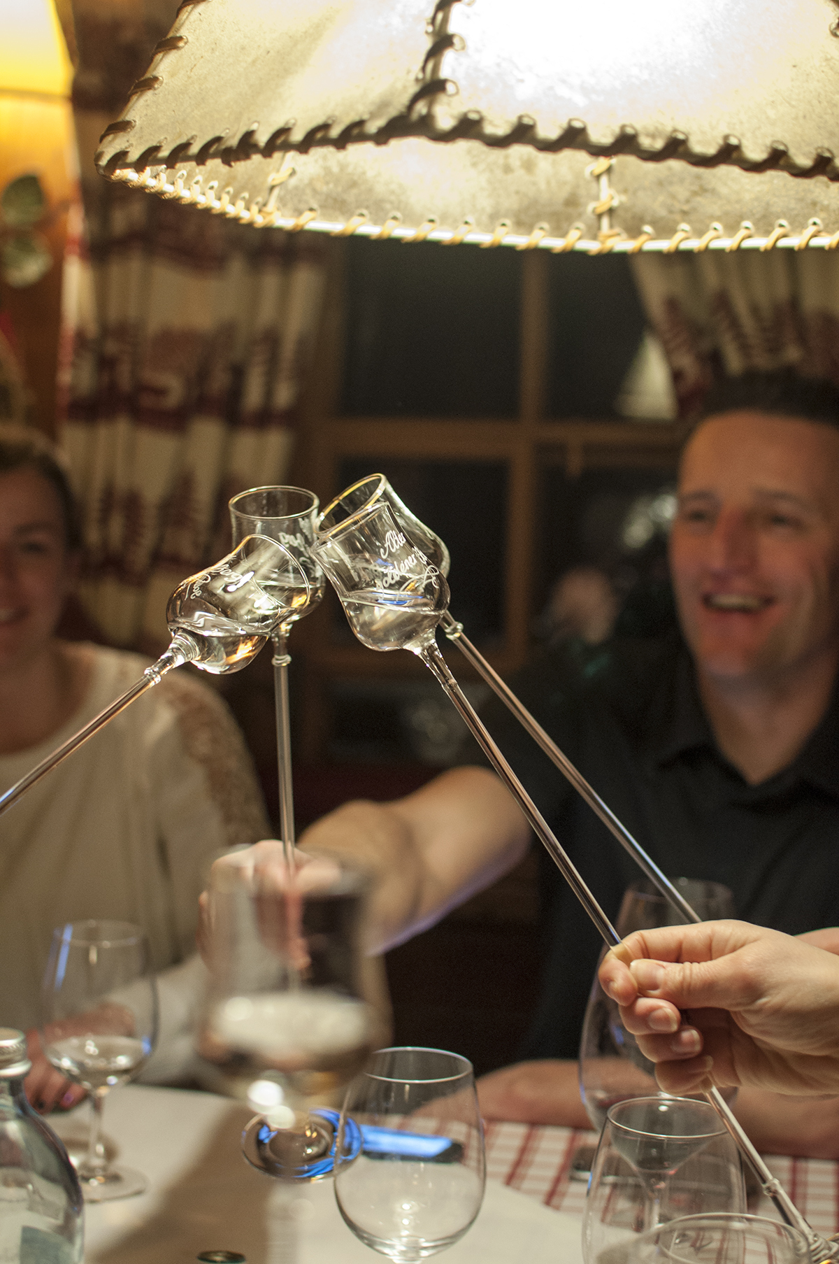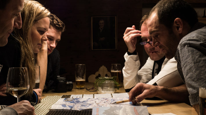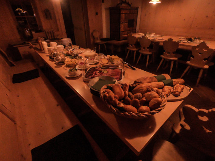 Varje middag innefattar utöver 45 kg mat även en genomgång av var vi under dagen har färdats – i tillfälle av eventuella minnesluckor – och hur morgondagen ser ut. Vår guide Heli förklarar utförligt och korrekt med både höjdmeter och namn på byar som vi kommer att skida igenom. Proffsigt och uppskattat, men alla tyska namn på allting gör att det mestadels blandas ihop till en soppa och jag inser att det är bäst att bara njuta av turen istället för att memorera namnen med korrekt uttal.
