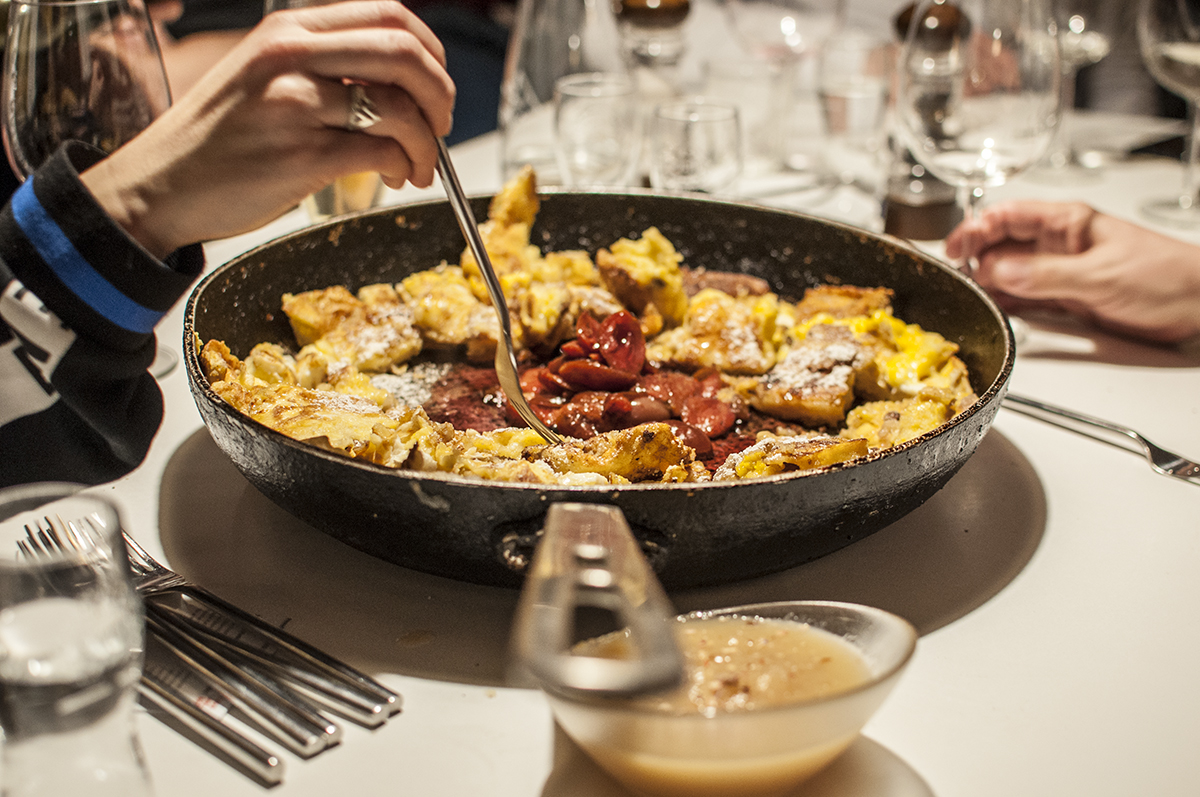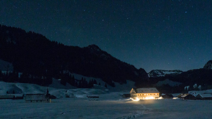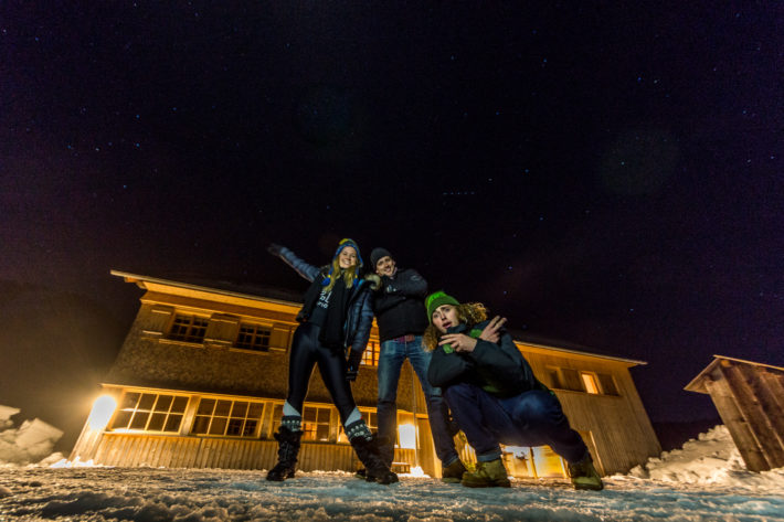 Efter att ha smällt i oss en avslutande Kaiserschmarren till efterrätt sitter vi med putande magar och blickar mot varandra. Ord är överflödiga, vi vet alla vad som väntar på oss utanför dörren. Det är dags för att genomföra den absoluta höjdpunkten av resan. Sju pannlampor skymtas bland bergen i Vorarlberg. Vågräta pilar likt stjärnfall i ljusets hastighet, tjoandes och skrattandes av upplevelsen.