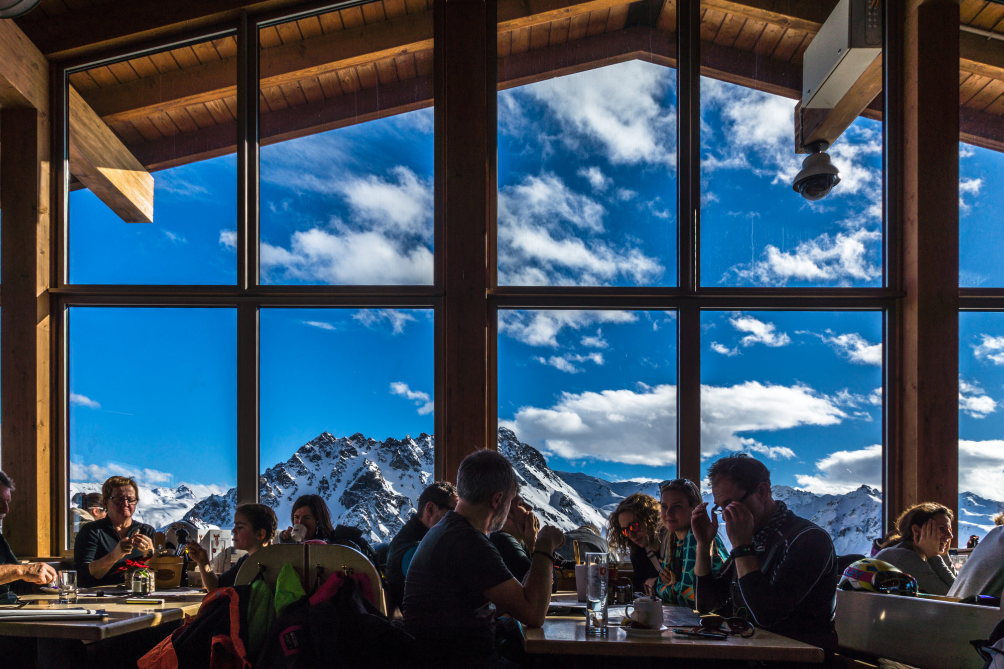 Vitamindrycker och bars fördelas ut i bilen under bilfärden mot Sonnenkopf, ett system benäget fem minuter bort. Efter ett åk i systemet är det dags att slänga i sig lunch och efter det ska vi tura i en timme upp till Muttjöchle, 2074m, och därifrån njuta av ett åk hela vägen ner till nästa område, Silbertal i Montafon, 889m. Gänget är hungriga och samtliga bestämmer sig för att ladda upp inför kommande prestationer precis som Björn Borg: med en stor stek.