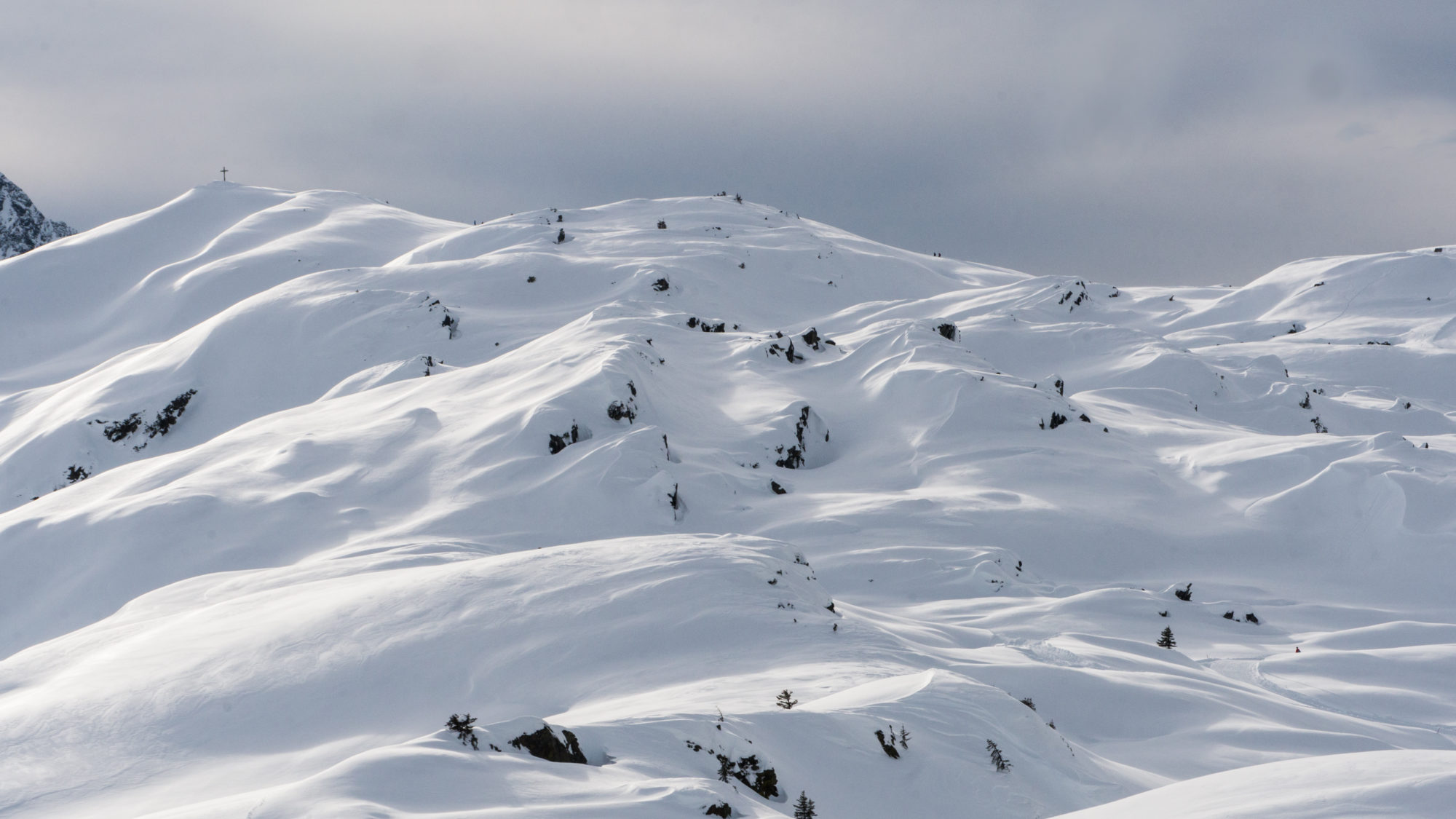 Dag fem påbörjas i Schruns, tio minuter från hotellet i Silvertall. Idag ska vi gå lös i Silvretta Montafons offpistområden samt titta förbi gränsen mot Schweiz. Dagen rivstartar med en boothike med sele upp till toppen av ett orört åk. Det här området är ett av de mer kända ställena i Österrike för offpiståkning, och det syns på åkarna runtom här. All är väderbitna och ser ut att när som helst vara kapabla till att kasta sig ut för första bästa klippa.