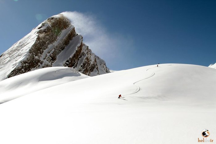 Vi har tur den här helgen. Liften upp på toppen av berget Sadzele har stått stilla sedan starten av vintersäsongen men nu har rätt reservdelar anlänt och liften har börjat gå igen. Väljer du skiers left när du hoppar av liften får du ett brett och brant snötäcke framför dig. Då vi inte har fått tag i en lokal guide för dagen går vi all in skiers right istället. Inte fel det heller; lika brett och nästan lika brant, men kanske aningen fler spår i terrängen. Men vad gör det? Det är inte direkt trängsel på berget.