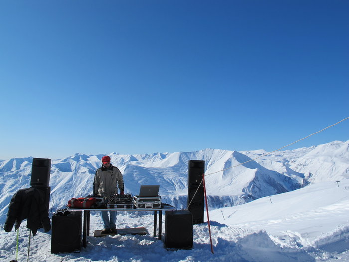 Vi spenderar eftermiddagen på Kudebi, 3007 meter över havet, som erbjuder skidåkning i tre väderstreck. Det fjärde väderstrecket hoppar vi över, det åket leder rätt ut i vildmarken och det hade sannolikt inneburit flera timmars traskande för att nå dalstationen igen. Som sagt, vi blir kvar på Kudebi och nöter den enda liften som tar oss upp. I februari 2012 stod Gudauri värd för Georgiens första internationella snowboardtävling. Huvudarrangör var det internationella skidförbundet FIS och evenemanget drog till sig nationer som till exempel Japan, Slovenien och Georgien. På grund av undertecknads anmälning blev Sverige den tjugonde och sista nationen att anmäla sig till tävlingarna slalom och storslalom. Dragplåstret till årets tävlingar var slovenen Rok Flander, som blev världsmästare 2007 i parallellstorslalom, dock utan förstaplacering i Gudauri. Det märktes att georgierna var stolta över sitt första FIS-mästerskap. Presskonferensen var välbesökt och tv-kanalerna fulla av reportage, för att uttrycka det milt.