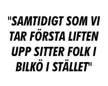 För det andra innebär det att när skidsystemet drar igång på morgonen är det inte några längre liftköer. Samtidigt som vi tar första liften upp sitter folk i bilkö i stället. Mer utrymme i backarna tänker vi igen.