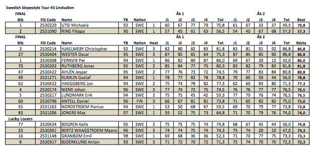 Endast två tjejer kom till start i Lindvallen men inte vilka tjejer som helst: Michaela Utsi och Filippa Ring. För Michaela Utsi var det tävlingscomeback efter lång frånvaro sedan knäskadan i Nine Queens för ett år sedan. Både Michaela och Filippa körde imponerande och tog ett stort kliv mot morgondagens final – och finalen i Åre.
