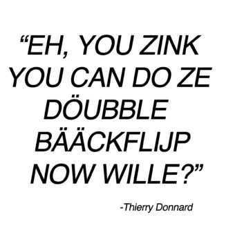 ”Eh, you zink you can do ze döuble bääckflijp now Wille?” Här imiterar han fransosen med överdriven accent värdigt ett humorprogram.