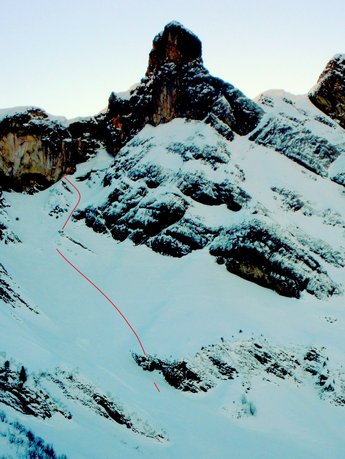 – Jag var medveten om att underlaget på berget var väldigt varierat. Is de första hundra fallhöjdmetrarna, blandat i mitten och härlig knädjup, fast gammal, kallsnö ner mot botten, säger Lotten när Freeride når henne dagen efter tävlingen.