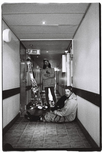 Adam Falk och Nicke Jacobsson i Riksgränsen under inspelningen av Luminou.