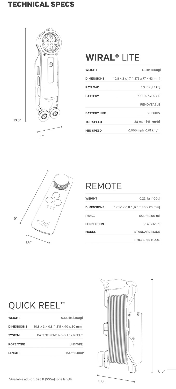 Produkten heter ”Wiral Lite” och det är ett kabelsystem för filmning. Det kommer att kosta ungefär 3400 svenska kronor när det släpps våren 2018. Det ska vara lätt att hantera och passa till smartphones, actionkameror och även systemkameror. Den maximala belastningen på systemet är 1,5 kilo.