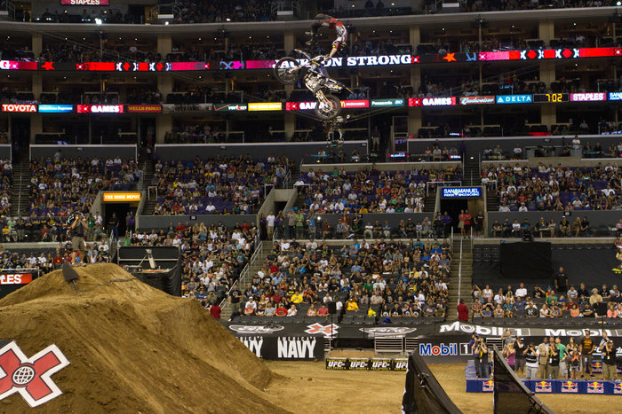 För Travis Pastranas del slutade X Games innan det egentligen hade börjat. I Moto X Best Trick gick Pastrana för sin omtalade rodeo 720 men crashade och fick lämna arenan på en bår. Brutna ben i foten respektive benet var resultatet och det lär inte blir mer Pastrana i årets X Games. Moto X Best Trick vanns utav Jackson Strong.